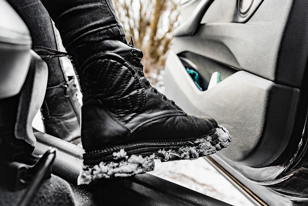 - Clap wet shoes before entering the vehicle to shake off moisture and remove grime.